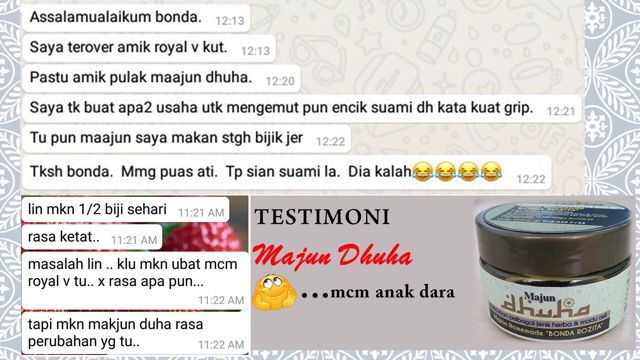 Khasiat kurma dhuha bg lelaki : Menguatkan dan memulihkan tenaga batin lelaki . Setiap seseorang berbeza penerimaan cara makan herba sebab itu pentingnya guide cara makan oleh pengedar jamu ratu . Keajaiban kurma dhuha datangnya daripada kuasa penyembuhan herba tanah arab yang menakjubkan (dengan. Buat bulat2 seperti saiz guli. Waktu makan kurma dhuha cara merawat diri. Jrm zseremban boleh ambil serentak ke mustanir megaratu facebook. Kurma dhuha suplemen berunsurkan makanan sunnah yang sangat baik untuk kesihatan lelaki dan perempuan. Khasiat kurma dhuha bg lelaki : Kurma dhuha merupakan penyediaan tradisional pelbagai jenis herba,. Kurma dhuha adalah produk rumah hutan yg. Cara pengambilan kurma dhuha dewasa (lelaki & wanita) aturan pengambilan 1 bekas.